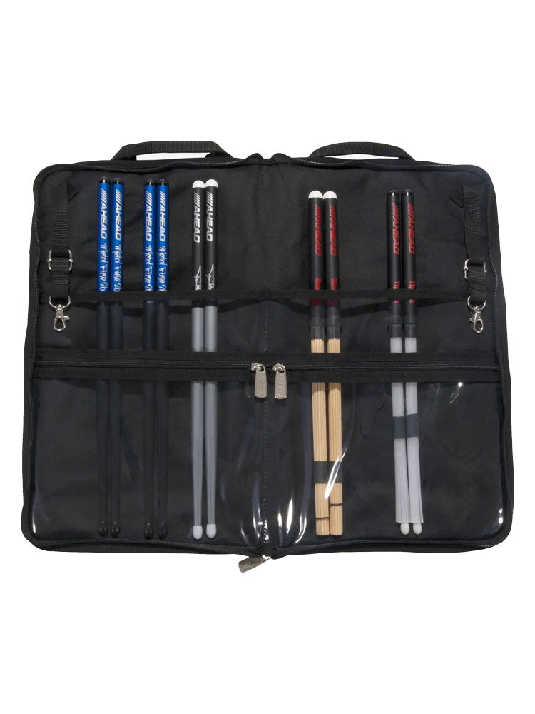 The Ahead Armor Jumbo Drumstick Bag is constructed of a heavy duty luggage grade 600 Denier exterior. It is designed for drummers looking for a larger bag with more room for sticks and accessories. The Jumbo Stick bag by Ahead Armor is designed to accommodate up to 16 pairs of sticks. It has a large outer pocket for accessories, a heavy duty handle, and an outer pocket for any accessories as well as an interior pocket with a clear window to easily identify your items removable shoulder strap.
