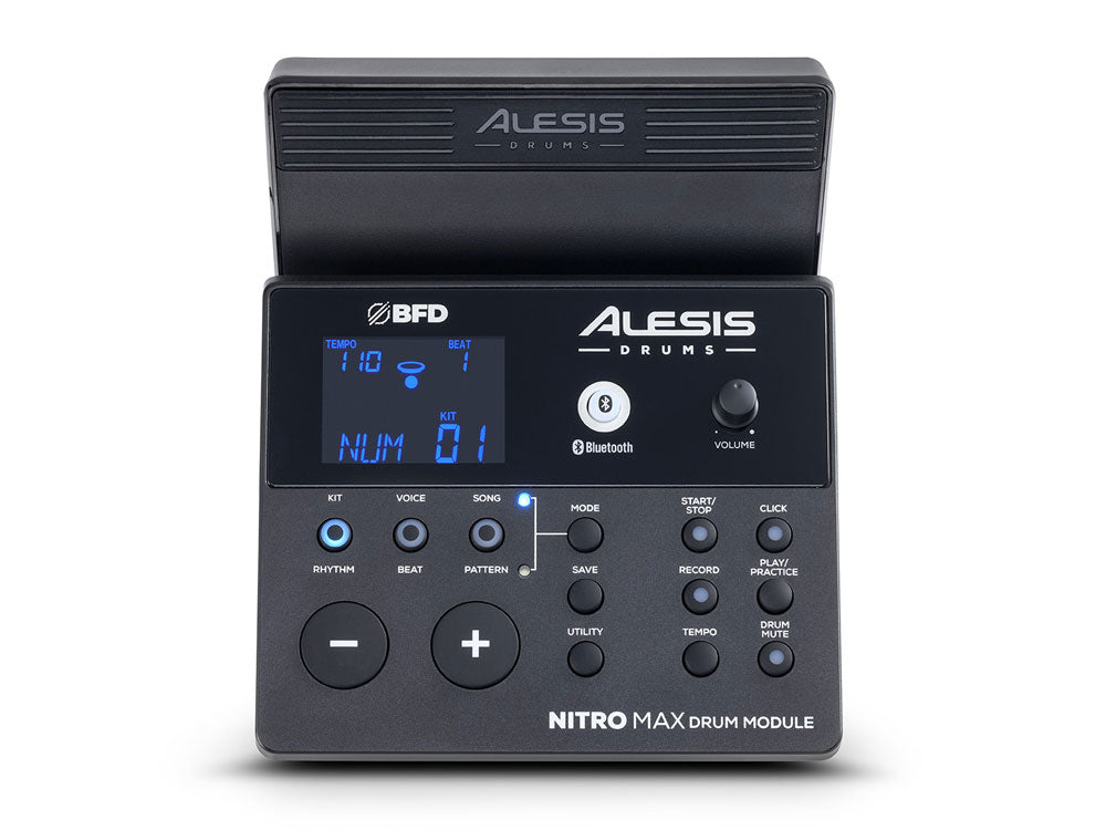 The Nitro Max drum module is at the center of not only realistic sounding drum and percussion instruments but also cutting-edge technology to deliver the tools needed for modern drum practice and performance. Featuring over 400 premium sounds from the BFD drum library, the Nitro Max module puts dozens of high-quality instruments within reach with the simple press of a button. Users can create and store up to 16 custom presets for quick retrieval.