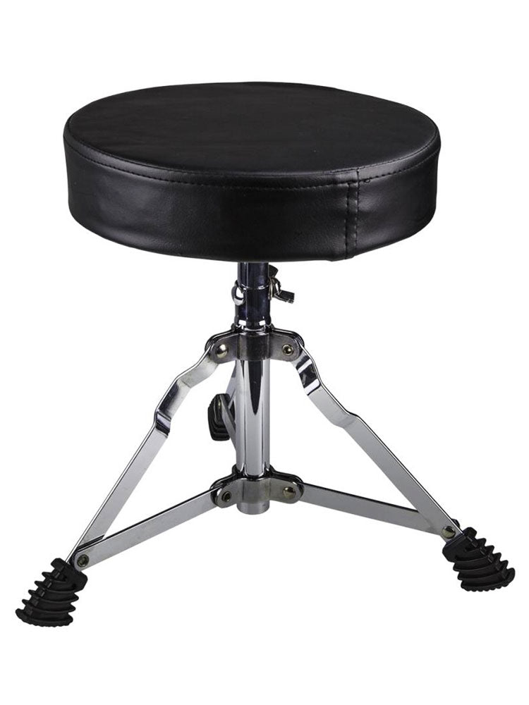 This is a single braced drum throne with a padded seat. It comes in a chrome finish and has 4 height adjustment positions.