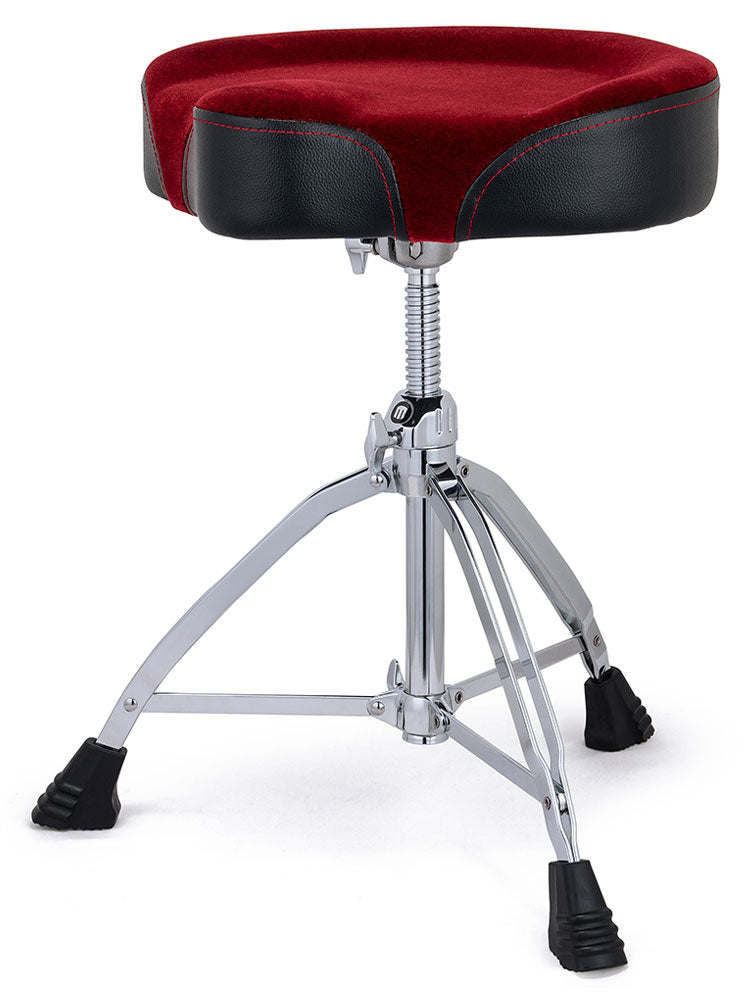 With its 17" x 4" saddle-style cushioned top, the T865SER is all about comfort. The sloped leg openings of the biomechanically shaped seat provide a free range of motion while the raised center and back edge help the player to maintain balance. The Red Cloth top insures a breathable and slip-proof playing experience.