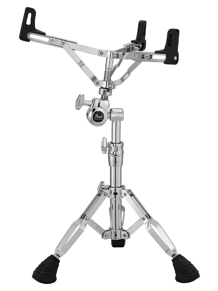 The Pearl S-1030 Snare Stand adjusts to fit virtually any size snare from 10˝ to 16˝. Each arm has locking adjustment rails that can be tightened or loosened with a drum key. The arms are indexed for precise positioning.