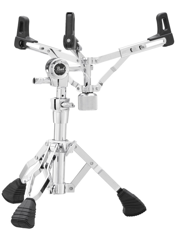 The Pearl S-1030D Snare Stand adjusts to fit virtually any size snare from 10" to 16". Each arm has locking adjustment rails that can be tightened or loosened with a drum key. The arms are indexed for precise positioning.