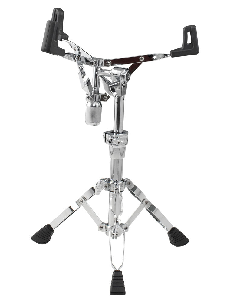 Advanced drum hardware for high-impact gigging, the S-930D Double Braced Snare Stand's shorter profile and dropped basket make it perfect for adapting larger drums in your optimum play setting. A road-ready ally for any player's primary drum, its sturdy tubing and die-cast tier joint keep snare drums in their place with serious stability. To deliver superior tone, Pearl's Patented Air Suspension Rubber Basket Tips clutch snares from 10" to 14" by the bottom hoop, for a secure hold without overdue tension. The S-930D's Uni-Lock Basket Tilter gives the stand a lower profile with smooth, gearless positioning, assuring the perfect height and angle for deeper drums. Like all members of the Award-Winning 930 Hardware family, its Trident Design Tripod base sports heavy duty, dual lateral braced legs for balanced support in play.