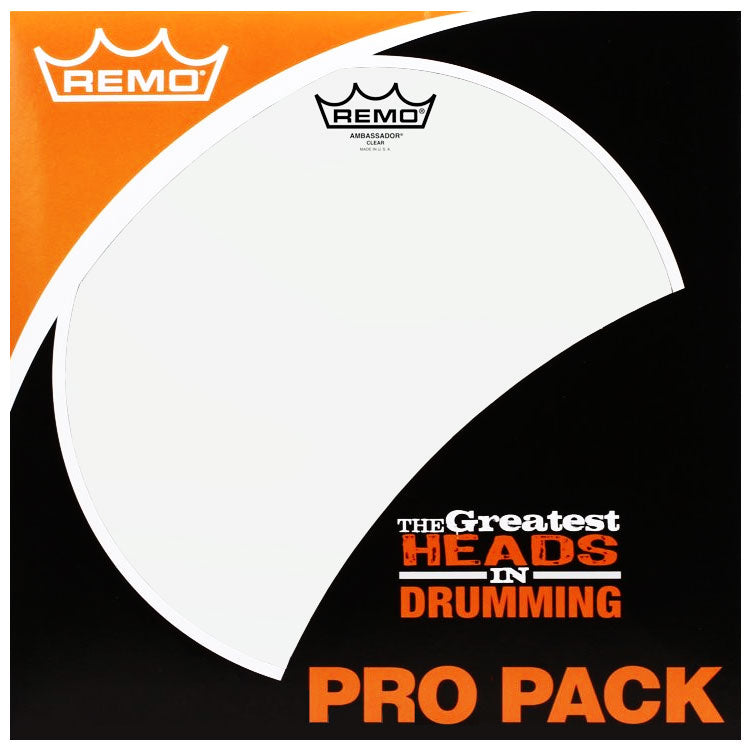 Remo Pro Packs offer the convenience of a full set of tom heads in a single package. Representing increased value when purchased as a set. Pro Packs also feature a free 14" batter head, and are available in today's most popular models and sizes. The Ambassador® Clear drumhead features an open, bright and resonant sounds with plenty of attack. Constructed with 1-ply 10-mil Clear film, Ambassador® Clear drumheads are used as batter heads and are the industry standard Tom resonant drumheads.
