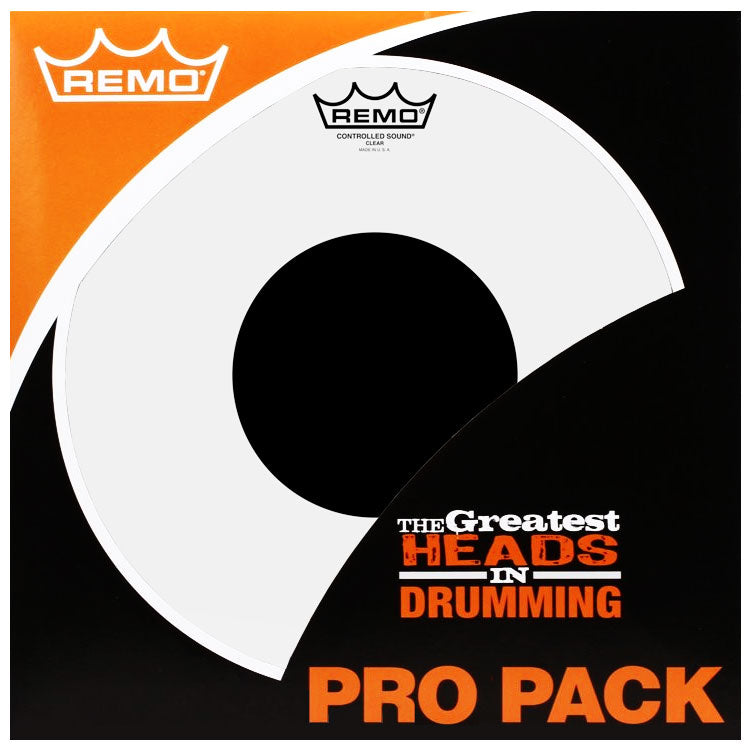 Remo Pro Packs offer the convenience of a full set of tom heads in a single package. Representing increased value when purchased as a set. Pro Packs also feature a free 14" batter head, and are available in today's most popular models and sizes. The Controlled Sound® Clear Top Black Dot™ drumheads features focused midrange tones with a well-defined attack. Constructed with 1-ply of 10-mil Clear film and a 5-mil Top Black Dot™, Controlled Sound® Clear Black Dot™ drumheads provide articulate attack and projection with added durability. The drumhead's outer area offers enhanced tone and sensitivity while the center Black Dot™ adds durability and overtone control.
