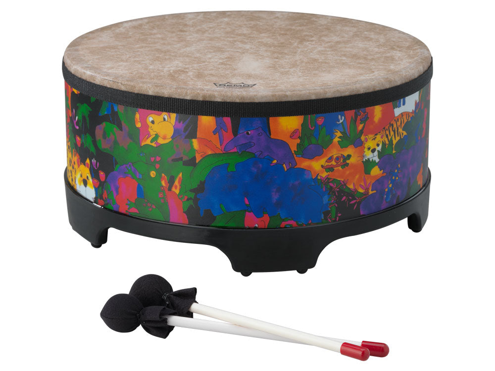 The Kids Percussion® Gathering Drum produces a big, fun sound. Featuring an Acousticon® shell, a pre-tuned Skyndeep® drumhead, and a vibrant Rainforest finish, the Kids Percussion® Gathering Drum can be played with hands, mallets or sticks. Ideal for group drumming in a classroom setting, the Kids Percussion® Gathering Drum is an important part of the percussion family of rhythm instruments and playfully introduces children to the basic building block of all music, which is rhythm.