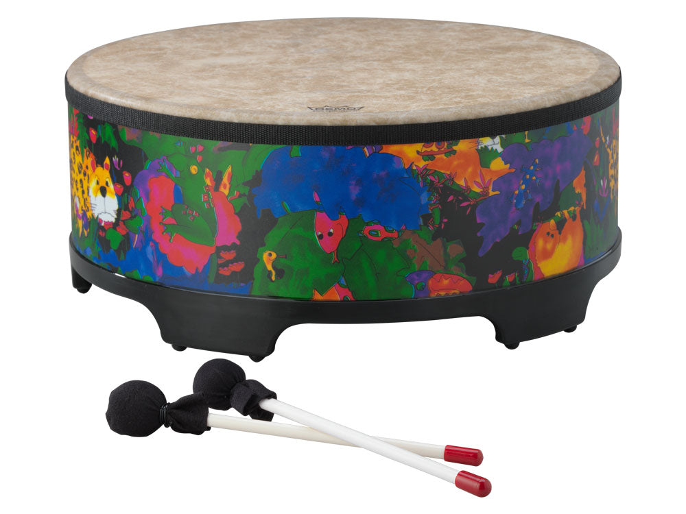 The Kids Percussion® Gathering Drum produces a big, fun sound. Featuring an Acousticon® shell, a pre-tuned Skyndeep® drumhead, and a vibrant Rainforest finish, the Kids Percussion® Gathering Drum can be played with hands, mallets or sticks. Ideal for group drumming in a classroom setting, the Kids Percussion® Gathering Drum is an important part of the percussion family of rhythm instruments and playfully introduces children to the basic building block of all music, which is rhythm.