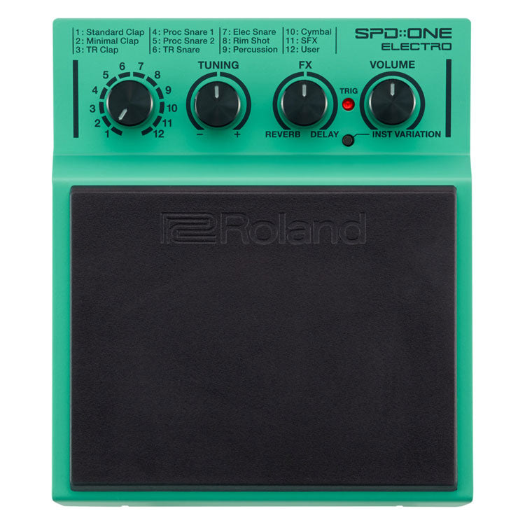 The SPD::ONE ELECTRO contains 22 iconic sounds, including drum and percussion sounds from Roland’s legendary TR-808 and TD-909 drum machines. Inside you’ll find fat snares, hi-hats, hand claps, and more, and the pitch of every instrument can be changed on the fly using a single knob. You can even add reverb or delay in seconds with a second knob. With the SPD::ONE ELECTRO, bolstering your backbeat with electronic sounds has never been simpler.