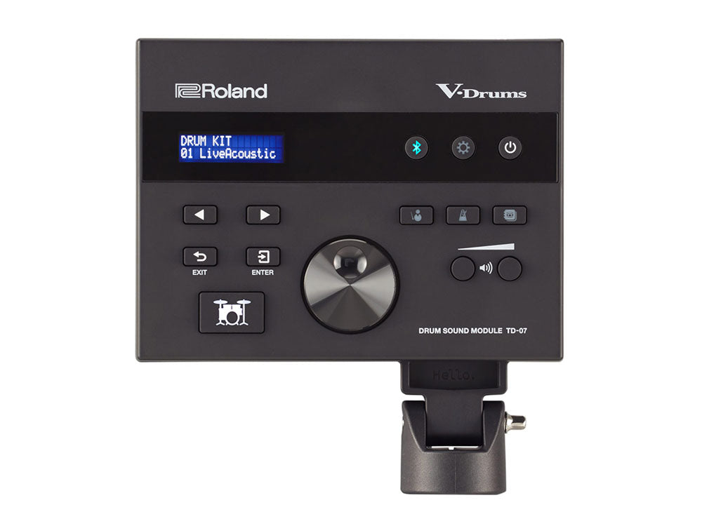 The TD-07 is a versatile sound module featuring high-quality acoustic and electronic drum sounds captured in professional studios and powered by advanced V-Drums technology. Personalize every sound by swapping drums, adjusting tunings, adding damping, and using EQ to shape the perfect tone. Use built-in Bluetooth to stream audio from smartphones and tablets directly through the module for seamless jamming or video lessons. And take advantage of USB connectivity to record stereo audio and MIDI in a DAW, trigger computer-based instruments, and integrate with coaching software from Melodics™ and their free interactive lessons for V-Drums users.