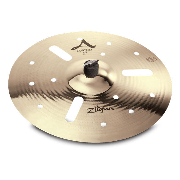 The A Custom EFX is a brighter version to the K Zildjian. This special effect cymbal features a unique laser "cut out" design that creates a dry, trashy sound, with sudden explosiveness and quick decay. Crash it for heavy, punctuating accents, or stack it with other cymbals to explore even more articulations, colors and effects. A Custom EFX cymbals come in a shimmering, brilliant finish and extra thin weight.