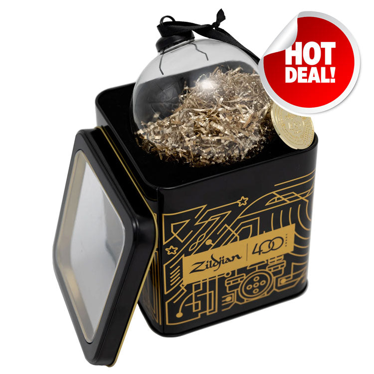 Celebrate Zildjian’s 400th Anniversary with the metal that started it all. This limited edition ornament is filled with authentic cymbal shavings from the one and only Zildjian foundry. Also known as “lathe hay,” these pieces are produced when Zildjian master cymbal craftsmen fine-tune the instrument during production. Not only are these cymbal shavings comprised of the secret Zildjian alloy – copper, tin, with traces of silver – they were specifically collected in early 2023 to commemorate Zildjian’s 400th year. Packaged in a printed commemorative tin to protect and store the ornament for years to come, this is a unique keepsake for any Zildjian fan.